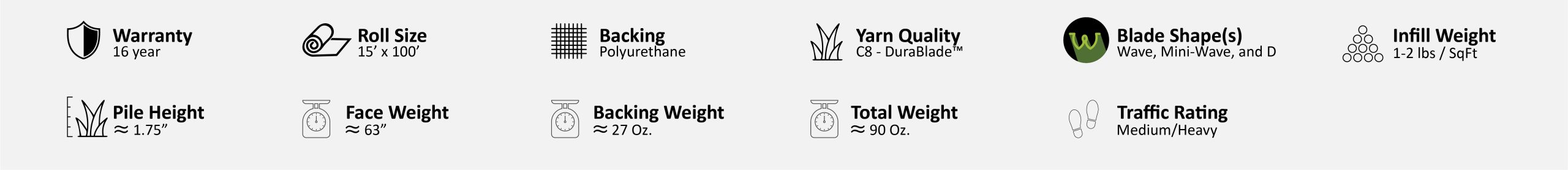 Bethpage Blend boasts the DuraBlade™ technology, enhancing the performance and realism of this turf. The distinct Wave and D blade shapes, combined with the innovative features of DuraBlade technology, create a visually appealing and authentic lawn. DuraBlade technology’s unique molecular structure results in stronger and more durable blades, making Bethpage Blend stand out for its superior performance and resilience.